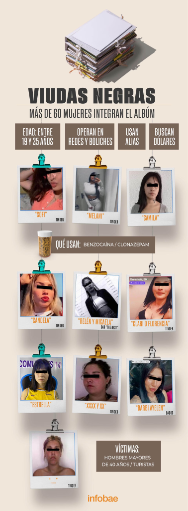 La Unidad Fiscal Especializada en Investigación Criminal Compleja (UFECRI), a cargo del fiscal José María Campagnoli, identificó a más de 60 posibles viudas negras, aseguraron fuentes judiciales a Infobae. Sus víctimas suelen ser hombres mayores de 40 años y turistas extranjeros. Los detectives notaron que, cada vez más, estudian a los hombres que harán caer en la trampa. “Hacen inteligencia antes de seducirlos, porque buscan botines en dólares”, detallaron.