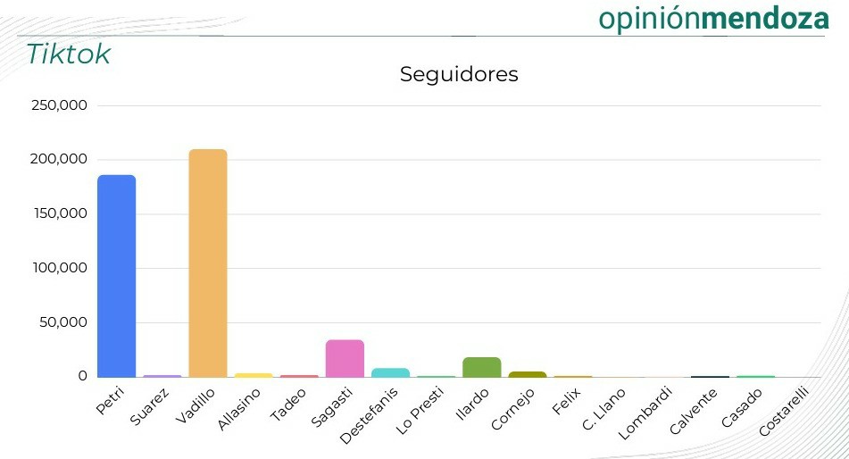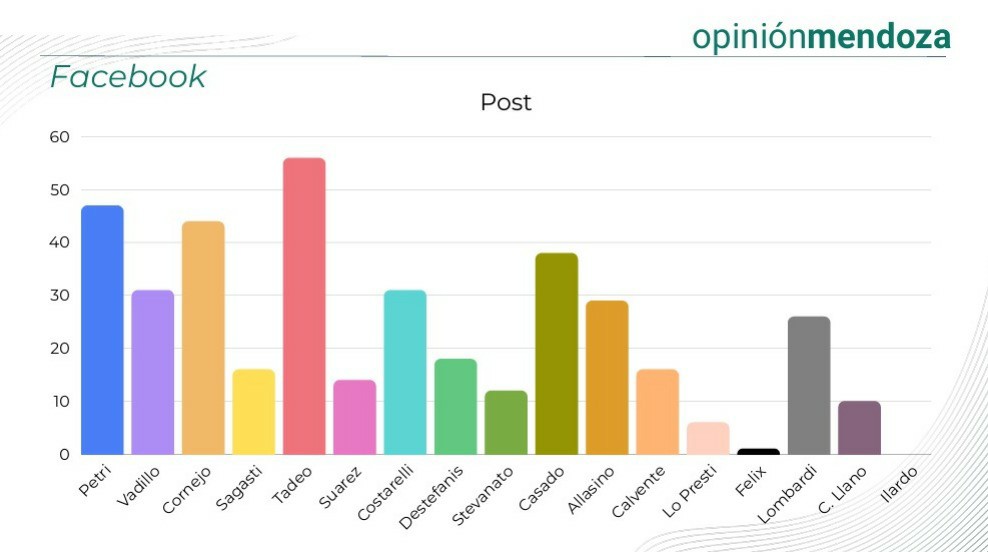 Según el analista, la métrica del éxito no es el volumen de la audiencia, sino la capacidad de generar una comunidad activa que participe y comparta. «En Instagram, Petri supera los 300.000 seguidores y Vadillo los 250.000, marcando una diferencia amplísima respecto a la tercera, que es Sagasti con 50.000. Sin embargo, cuando medimos el engagement —likes, comentarios y compartidos—, las cifras se emparejan. Tadeo García Salazar, por ejemplo, está trabajando muy fuerte en la cantidad de posteos, pero todavía no logra ese despliegue de participación que es lo que, al final del día, cuenta», comentó al respecto. «Facebook, por su parte, es la red más pareja; intendentes como Marcos Calvente (Guaymallén) han logrado armar comunidades fuertes allí, recuperando un espacio que muchos dieron por muerto», añadió.