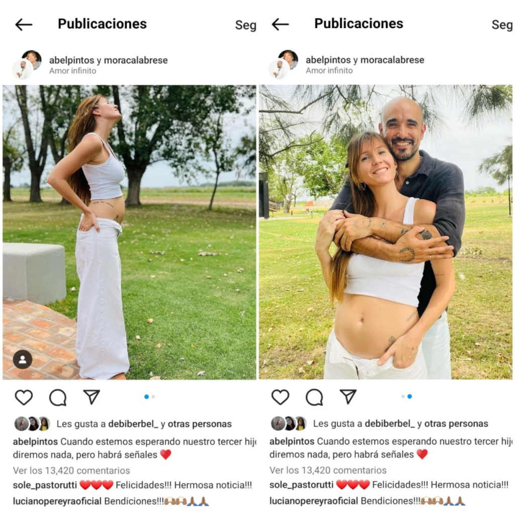 En una publicación en Instagram, el exjurado de Got Talent (Telefe) expresó su felicidad al anticipar la llegada del nuevo miembro de la familia. Acompañando el mensaje, Abel seleccionó dos encantadoras imágenes: una de su esposa posando con su embarazo y otra sonriendo junto a ella, abrazados frente a la cámara.