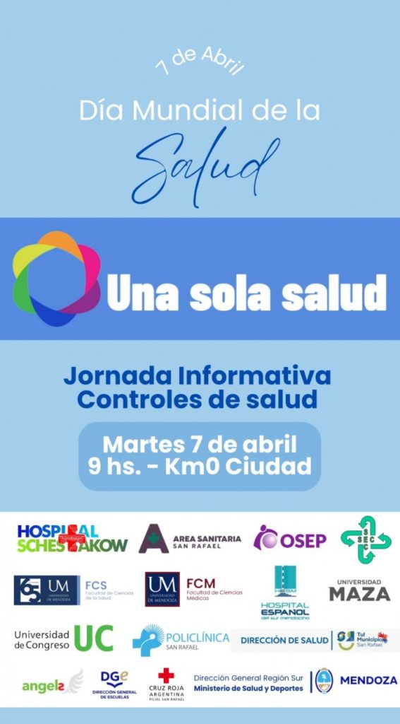 En el marco del Día Mundial de la Salud, que se conmemora cada 7 de abril, desde el Hospital Schestakow, junto a diversas instituciones de San Rafael, organizaron una jornada abierta a la comunidad que tendrá lugar en el Kilómetro Cero de la ciudad. La propuesta, que comenzará a partir de las 08:30 horas, incluirá múltiples stands informativos y actividades orientadas principalmente a la prevención y promoción de la salud, con un fuerte enfoque en los jóvenes.