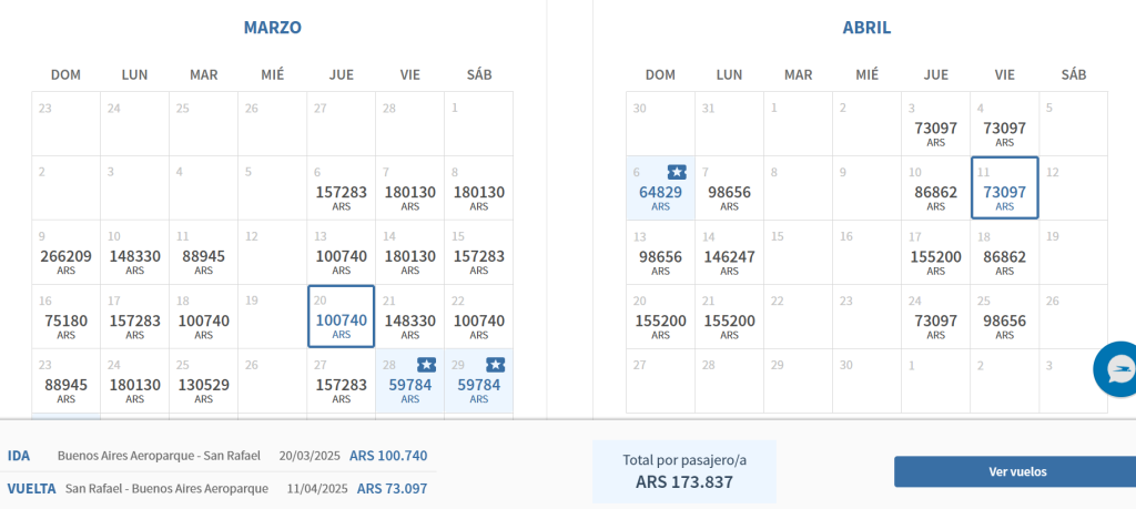 Otra preocupación es que solo se puede sacar boletos en abril solo generando un pasaje en el mes de marzo. Cada vez que se trata de sacar un pasaje -en cualquier fecha- entre el 1ero y el 30 de ese mes la página responde que “no tenemos vuelos disponibles para vos en esos días”.