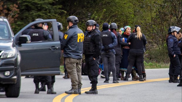 Según los primeros datos, a las 6 de la mañana se cortó la ruta 40 para evitar que el tránsito entorpezca el operativo y resguardar al resto de los civiles. Cerca de las 7 comenzaron a escucharse gritos por parte de los integrantes de la comunidad mapuche Lafken Winkul Mapu que insultaban a los uniformados y hasta lanzaron piedras contra la prensa.