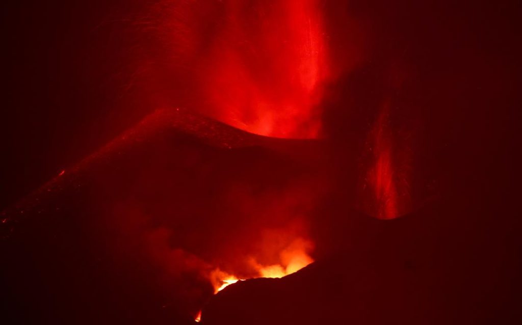 El volcán Cumbre Vieja de la isla española de La Palma (en el archipiélago atlántico de las Canarias) h alcanzado plena actividad y amenaza con aumentar su devastación, cuatro semanas después de que comenzara la erupción. En la actualidad tiene tres coladas de lava, una de ellas a punto de llegar al mar, como ya hizo la primigenia, y una columna de cenizas y gases alcanza los 4.200 metros de altura, lo que produce una atmósfera densa en la isla, aunque la calidad del aire «sigue siendo razonablemente buena», según informó hoy el director técnico del Plan de Emergencias Volcánicas de Canarias (Pevolca), Miguel Ángel Morcuende.