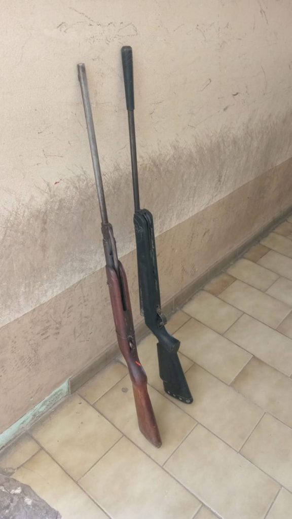 El segundo allanamiento tuvo lugar en la calle Presidente Alvear, por averiguación de amenazas. En el lugar, los efectivos policiales que realizaron la medida secuestraron dos aires comprimidos calibre 4.5 de diferentes marcas.