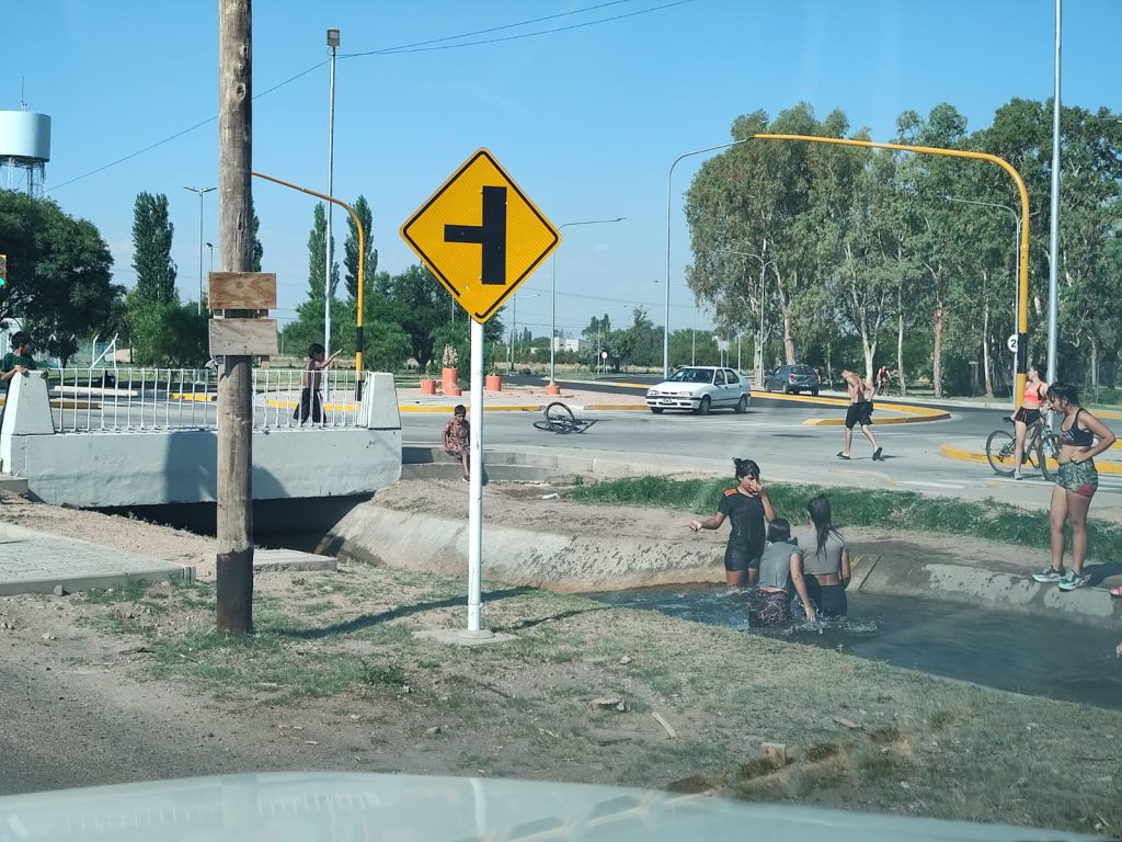Algunas de las zonas más «concurridas» por los bañistas son los canales de la avenida Tirasso, Rawson y el de calle Ejército de los Andes en el límite entre Ciudad y Rama Caída.