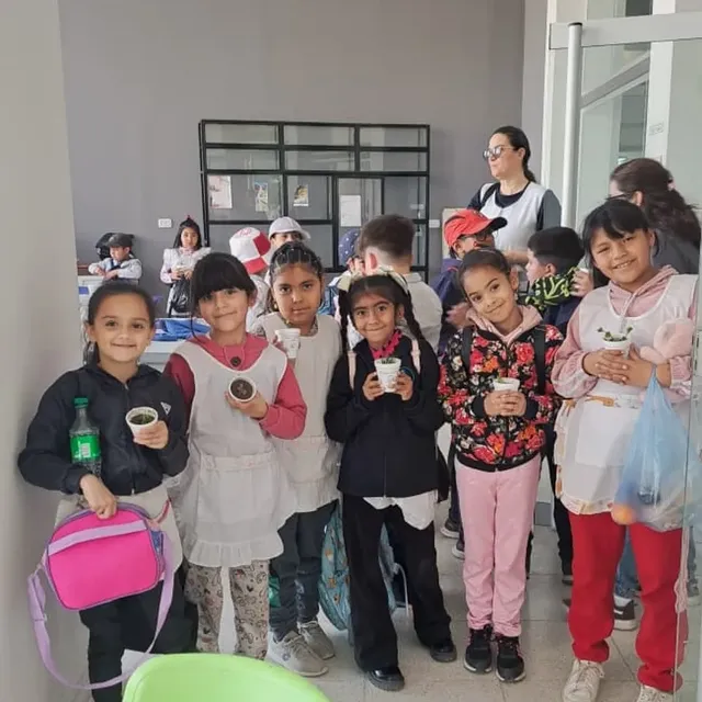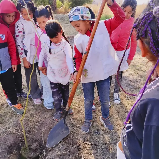 Posteriormente, los niños participaron activamente en la plantación de 10 ejemplares de algarrobo y cina-cina, donados por el área municipal de Espacios Verdes.