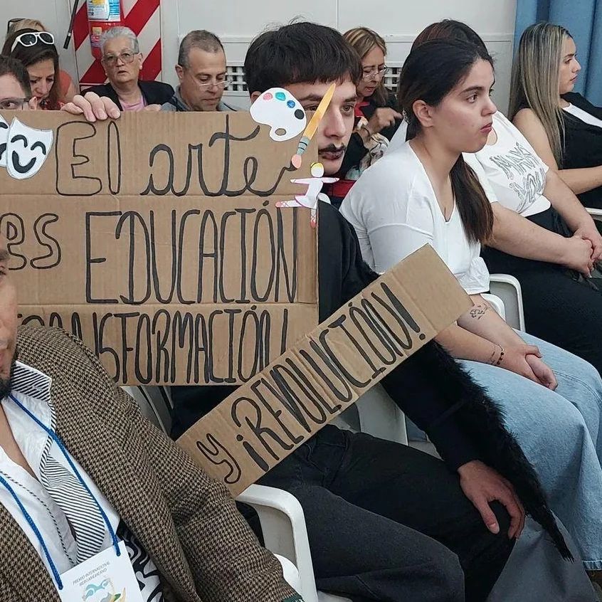 En el recinto se planteó la necesidad de “visibilizar la importancia de la educación pública, artística y de calidad”, en una convocatoria que llevó a varios integrantes de los espacios asistir caracterizados con elementos, títeres, instrumentos, carteles y banderas.