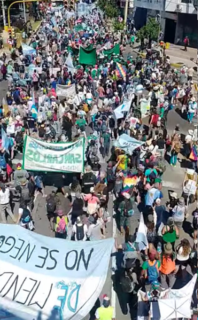 En diálogo con FM Vos 94.5, Giraud detalló la convocatoria que reúne a manifestantes de distintos puntos de la provincia para expresar su rechazo al desarrollo minero tal como está planteado. «Recibimos acá en la capital mendocina a varias columnas que vinieron de todos los puntos cardinales para concentrarnos frente a la Legislatura, en la Plaza Independencia. Queremos expresar nuestro rechazo al Proyecto San Jorge, pero también a los proyectos de exploración en Malargüe Distrito Minero Occidental, al Proyecto de Ley de Regalías y al Fondo de Compensación Ambiental», comentó al principio del reportaje.
