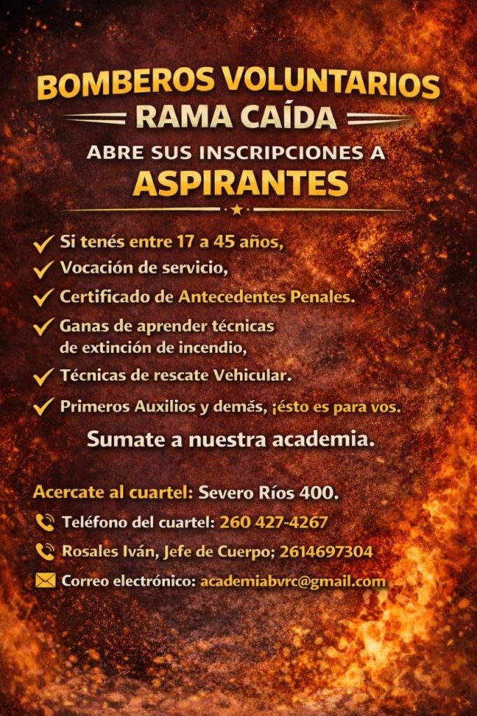 El cuartel de Bomberos Voluntarios de Rama Caída ha lanzado su convocatoria 2026 para sumar nuevos integrantes a sus filas. Iván Rosales, jefe del cuerpo activo, dialogó sobre la profunda vocación que sostiene a estos servidores públicos, la rigurosa formación que atraviesan y la cruda realidad de un sistema que, a menudo, se apoya exclusivamente en el sacrificio personal ante la falta de recursos estatales.