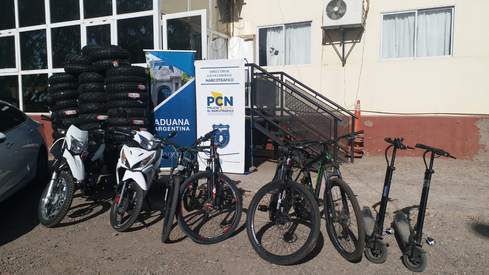 En los procedimientos realizados durante la noche del 24 y madrugada del 25, que incluyeron 03 allanamientos en zona de Guaymallén se logró la detención de un clan narco – familiar, logrando la detención de 02 mujeres y 02 hombres y el secuestro de 07 ladrillos de clorhidrato de cocaína con la inscripción y cubiertas de moto de origen extranjero y que habrían ingresado al país en forma ilegal.