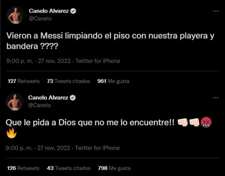 Pese a las explicaciones de sus seguidores, Canelo siguió insistiendo: «Así como respeto Argentina tiene que respetar México!! No hablo del país, hablo de Messi por su mamada que hizo«.