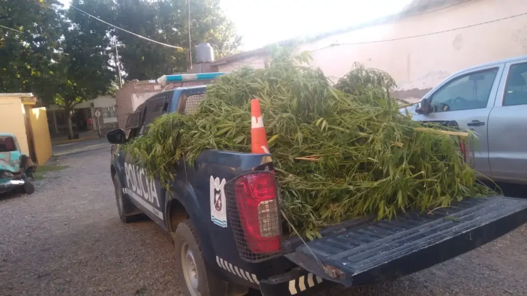 Antes de retirarse, los uniformados divisaron en uno de los domicilios de ese sector varias plantas de marihuana de más de tres metros de altura, indicaron las fuentes policiales.