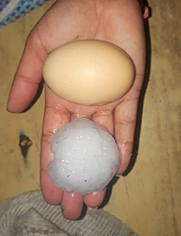 Al respecto el titular de Defensa Civil de San Rafael, Jorge Pizarro, dijo a nuestro Diario que “cayó mucha piedra en Malvinas Sur, en El Nihuil. En este distrito cayó como a las 17 horas, con abundante piedra y agua, se desplazó del lugar y volvió la misma tormenta como a las 19, pero esta vez era más que nada agua. En Malvinas, Malvinas Sur y la Guevarina cayó muchísima agua y granizo también. En algunos lugares se reportó granizo de importante tamaño y en otros fue de calibre menor pero abundante, acompañado de mucha agua”.