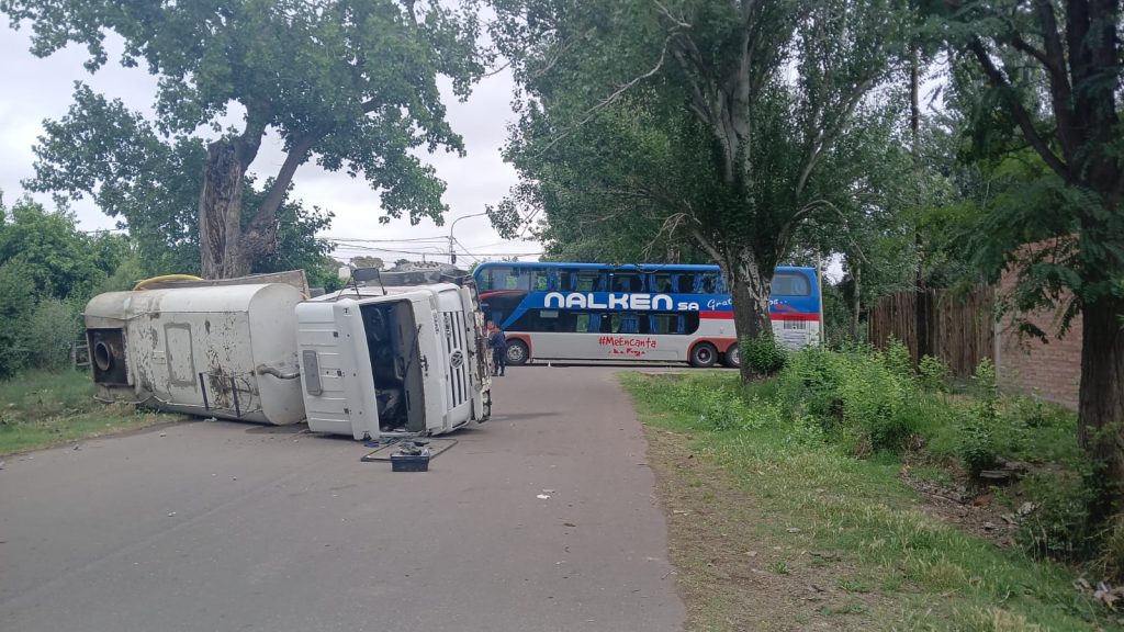 Un siniestro vial se registró este sábado por la mañana en la intersección de Independencia y Ortega, en Villa 25 de Mayo, donde un colectivo de la empresa Nalken y un camión municipal protagonizaron una fuerte colisión que terminó con el volcamiento del vehículo de mayor porte. A pesar del impacto, no hubo lesionados entre los 28 pasajeros del ómnibus.
