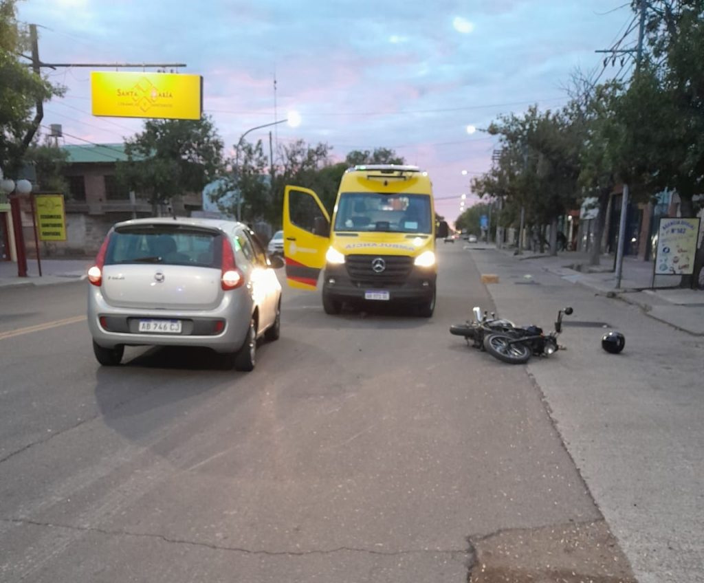 De acuerdo a la información oficial, un automóvil Fiat Palio que circulaba de oeste a este por Sarmiento colisionó, por causas que se investigan, con una motocicleta Gilera que lo hacía por calle Cornú de norte a sur.