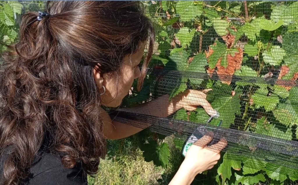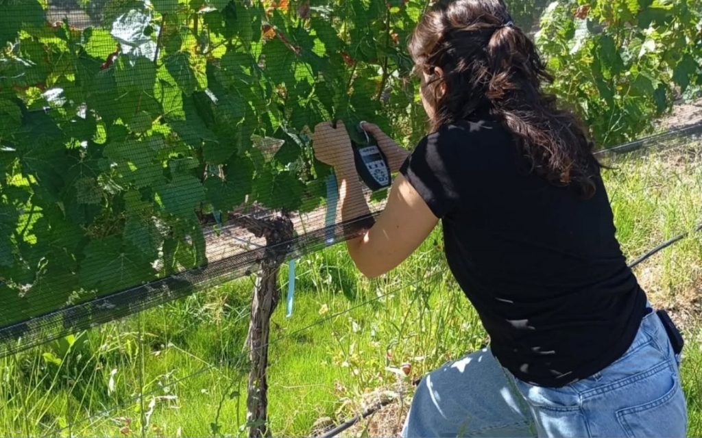 Técnicos del INTA Rama Caída llevan adelante ensayos de determinación de clorofila en hojas de vid con el objetivo de conocer, en el propio viñedo, cómo está funcionando el cultivo y cuál es su estado nutricional.