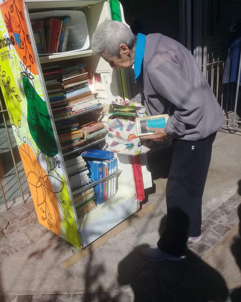 Cabe decir que una joven que se dedica a la realización de trabajos audiovisuales fue quien dejó esta heladera en excelentes condiciones a fin de que tenga una visual interesante y los transeúntes la abran para llevarse o colocar libros. Es que allí hay material para adultos y para niños.