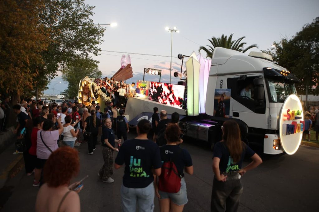 Hace instantes inició la caravana de la Reina Nacional de la Vendimia, Azul Antolinez.