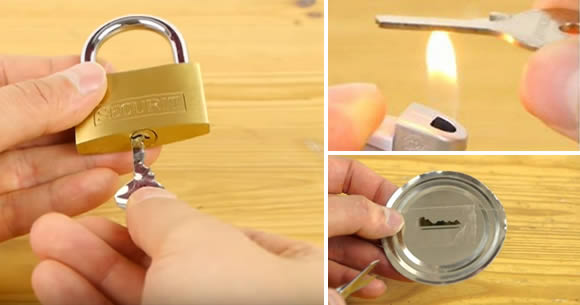 Necesitarás: la llave universal (la que quieres copiar), unas tijeras o alicates, una lata de atún, un encendedor y un poco de cinta adhesiva.