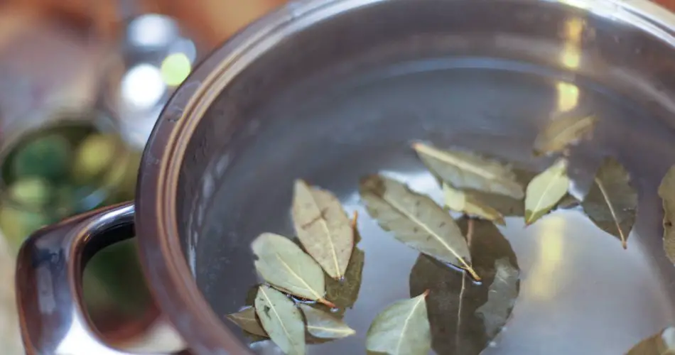 Lo único que tienes que hacer es llenar una olla con 1 litro de agua y añadir 7-8 hojas de laurel . Toma el fuego y mantenlo caliente.