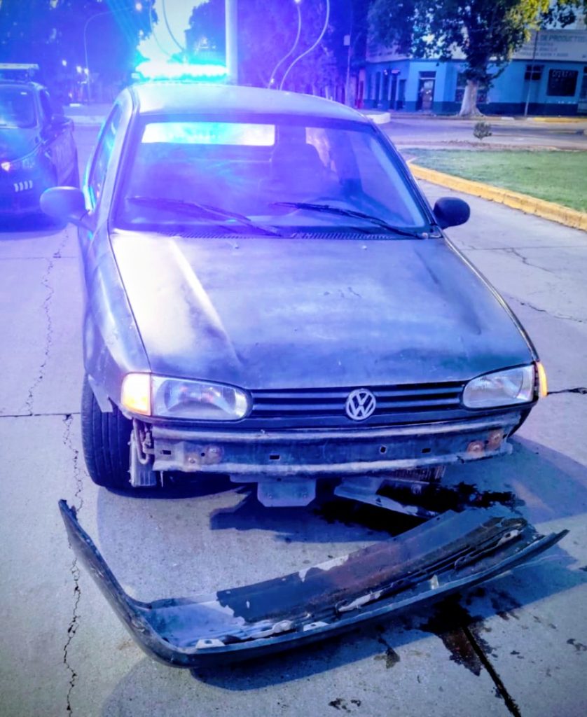 El hecho ocurrió a las 6:20. Según fuentes oficiales, un automóvil que se desplazaba por avenida San Martín en sentido sur-norte colisionó de frente contra la rotonda. Debido a la inercia del impacto, el rodado avanzó varios metros sobre la estructura antes de detener su marcha.