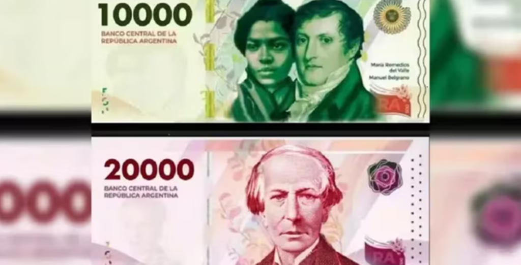 Las nuevas denominaciones de la moneda argentina, $10.000 y $20.000, llegarán al mercado financioro a partir de mitad de año, según el gobierno de Javier Milei.