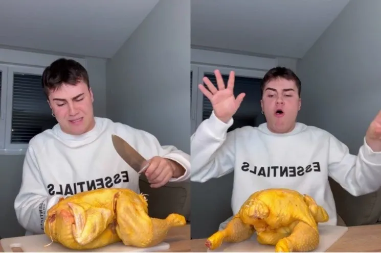 «No valoras lo que tienes hasta que lo pierdes», reza un popular dicho, y quizás sea a lo que este joven se le pasó por la cabeza cuando decidió cortar el ave. Resulta que Oscar, un reconocido tiktoker español que se mudó recientemente, tomó la decisión prepararse la comida, pero… ¡Nunca en su vida había cortado un pollo!