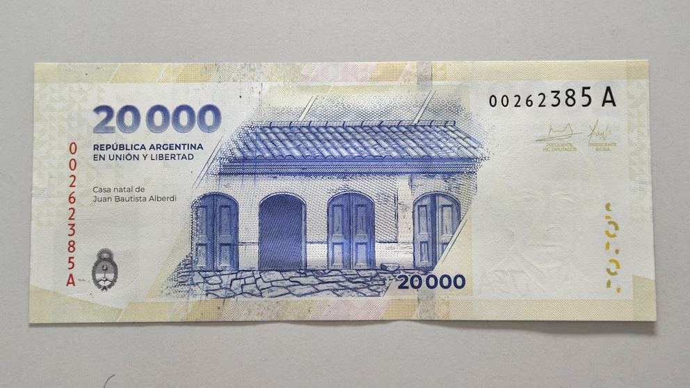 El nuevo billete de 20.000 pesos, presentado por el Banco Central de la República Argentina, forma parte de la familia “Heroínas y Héroes de la Patria” creada en 2022. En el anverso, se encuentra la figura de Juan Bautista Alberdi, quien desempeñó un papel fundamental en la redacción de la Constitución Nacional de 1853. En el reverso, se ilustra una recreación de la casa natal de Alberdi, situada en Tucumán, reflejando sus orígenes y su legado intelectual.