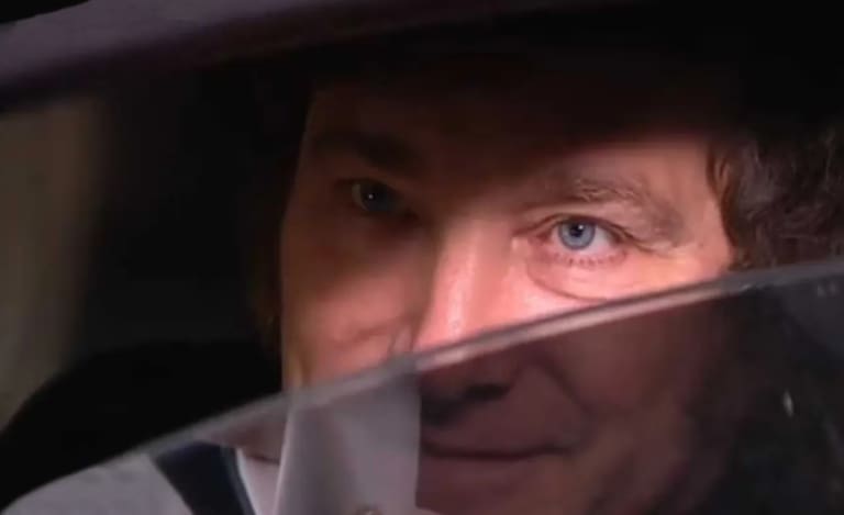 El conductor del ciclo se acercó al auto que estaba manejando el economista y protagonizaron un divertido ida y vuelta pero un detalle del vehículo del libertario sorprendió a todos: Javier Milei arribó con su Peugeot RCZ coupé completamento lleno de tierra.