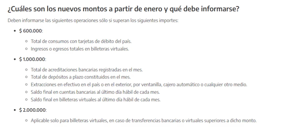 La Agencia de Recaudación y Control Aduanero (ARCA), ex AFIP, puede investigar en enero de 2025 a los usuarios que transfieran más de $600.000 y a aquellos que tengan saldos mensuales que sean iguales o superiores a $1.000.000. Además, serán objeto de investigación las transferencias con billeteras virtuales superiores a $2.000.000.