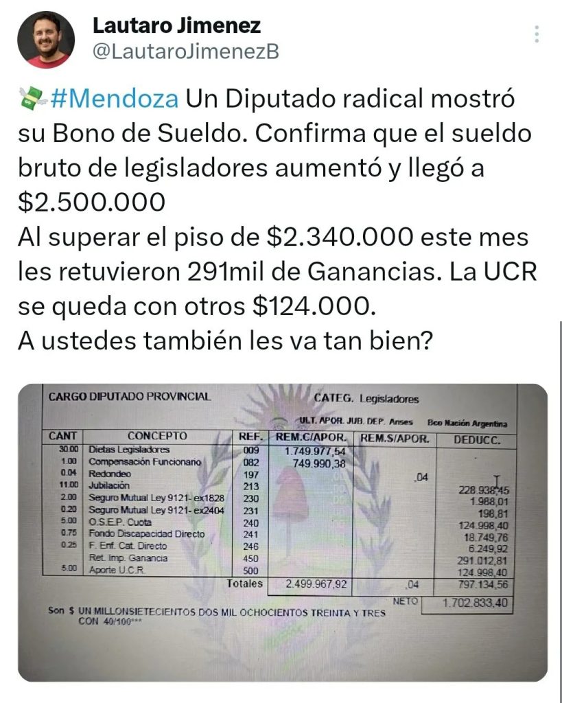 «Los sueldos de la Legislatura de Mendoza ni siquiera son públicos. Hay una clara falta de transparencia y debate», agregó.