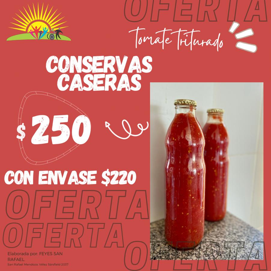 La docena de pizzetas se comercializa a 200 pesos, la de alfajorcitos de maicena a 250, mientras que las botellas de tomate triturado cuestan 180 pesos el medio kilo y 250 la de un kilo.