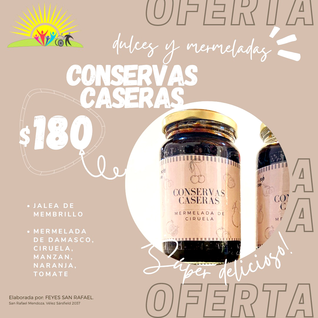 Una de las vedettes de Feyes son los dulces. Por 180 pesos se pueden conseguir los frascos de ½ kilo de mermeladas de damasco, ciruela, manzana, naranja y tomate, y también jalea de membrillo. También hay dulce de 1 kilo por 300 pesos y una promo de los 3 kilos por 1000 pesos.