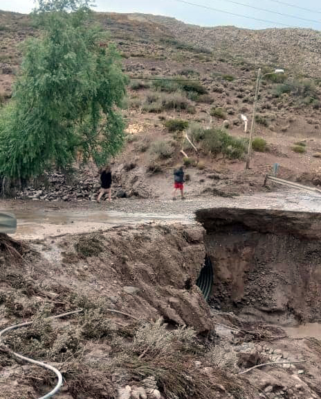 Continuando la entrevista dijo que “En cuanto a la ruta 40, la alcantarilla se rompió solamente en una parte y quedó un tramo de cinco metros de ancho que permite la circulación de vehículos liviano en una sola mano; también pueden pasar algunos vehículos pesados, pero con una velocidad muy restringida. Estamos tratando de articular con la policía, o gendarmería, para que eso sea regulado. Mientras tanto ya estamos trabajando en la recuperación de la parte de la alcantarilla que se fue para volver a colocarla en el lugar con el movimiento de suelos correspondiente. Concretamente puedo decir que se puede circular por la 40 hacia el sur. El otro lugar de la ruta en que hemos tenido problemas es en la zona de Mechenquil donde hubo también un flujo de detritos con acumulación de barro en casi dos kilómetros de la ruta y eso estaba este martes liberándose”.