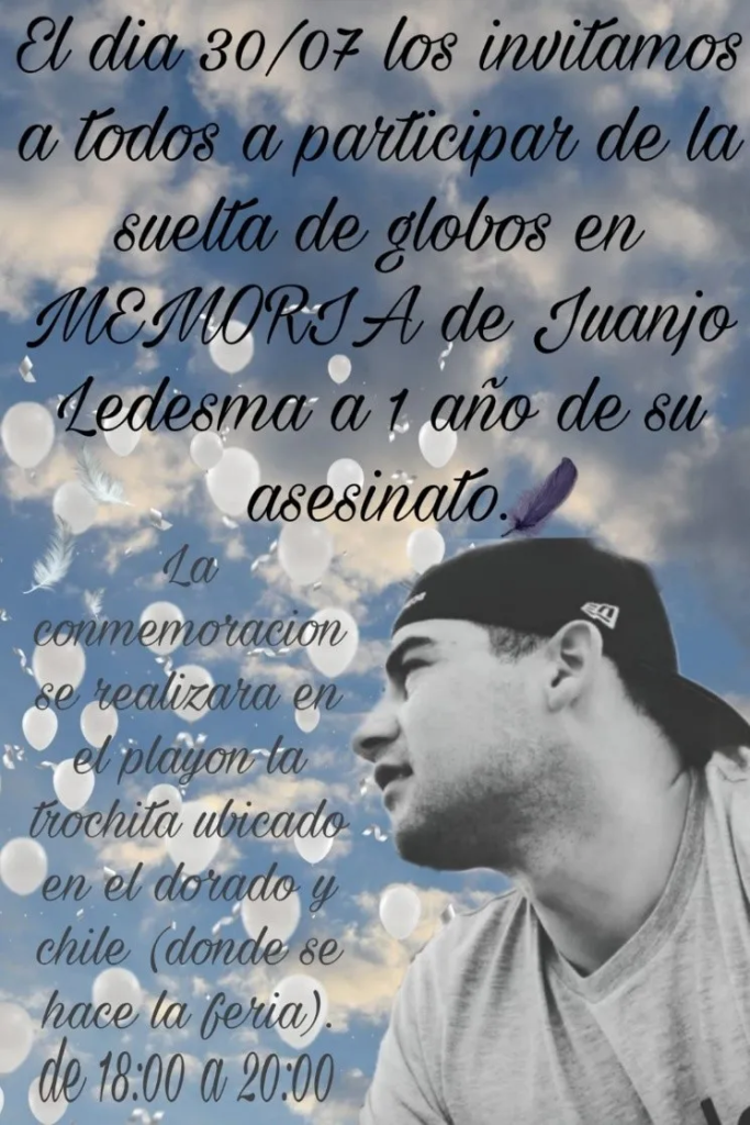 En ese contexto, la familia de la víctima reclama que se haga Justicia. Es por eso que el 30 de julio, fecha en la que se cumple exactamente un año del crimen, organizaron una suelta de globos en memoria del joven asesinado a puñaladas. La conmemoración se realizarán en el playón «La Trochita», situado en El Dorado y Chile (donde se hace la feria), en la ciudad de Ezeiza, de 18 a 20 horas.