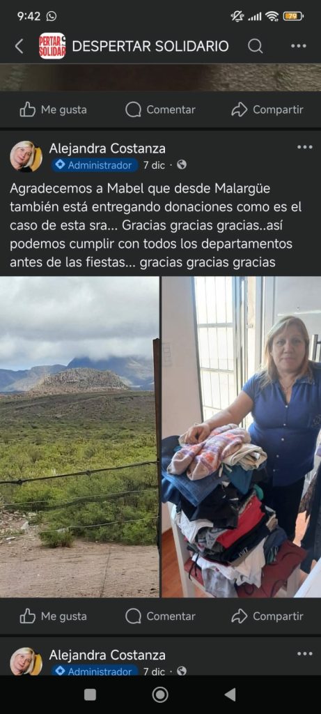 Alejandra Costanza, referente de Despertar Solidario, explicó que la organización funciona como “una organización sin fines de lucro” cuyo objetivo principal es asistir a quienes carecen de recursos básicos. “Lo que hacemos es ayudar a toda la gente que está carente de recursos, ya sea con ropa, con alimentos, con calzado, en San Rafael, Alvear, Malargüe, y ahora nos estamos abriendo hasta otras provincias donde están solicitando de nuestra colaboración”, detalló a Diario San Rafael y FM Vos 94.5.