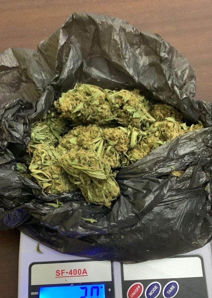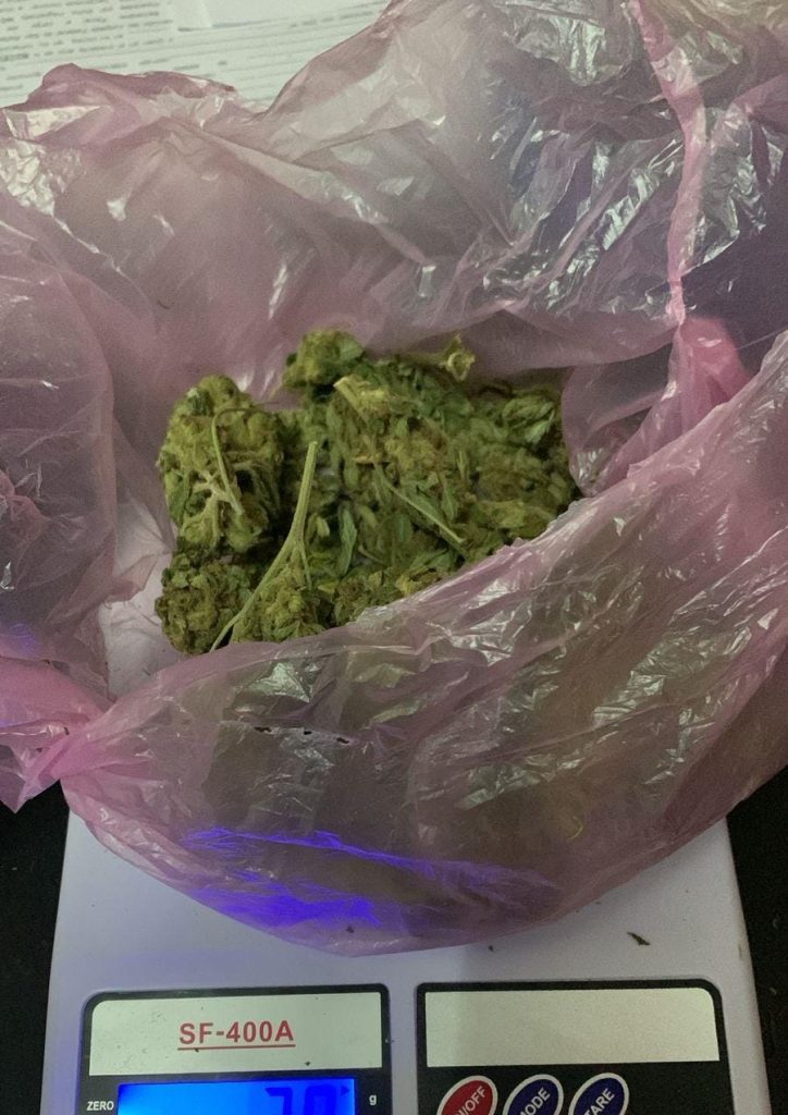Durante el allanamiento se secuestró un envoltorio con cogollos de marihuana (30grs), un envoltorio de papel con cocaína, un frasco con cogollos de marihuana (11grs), un frasco con cogollos de marihuana (7grs), un recipiente plástico con cogollos de marihuana (25grs), plantas de marihuana secas (100grs), diez envoltorios con cogollos, y un recipiente metálico con cogollos de marihuana (29gs).