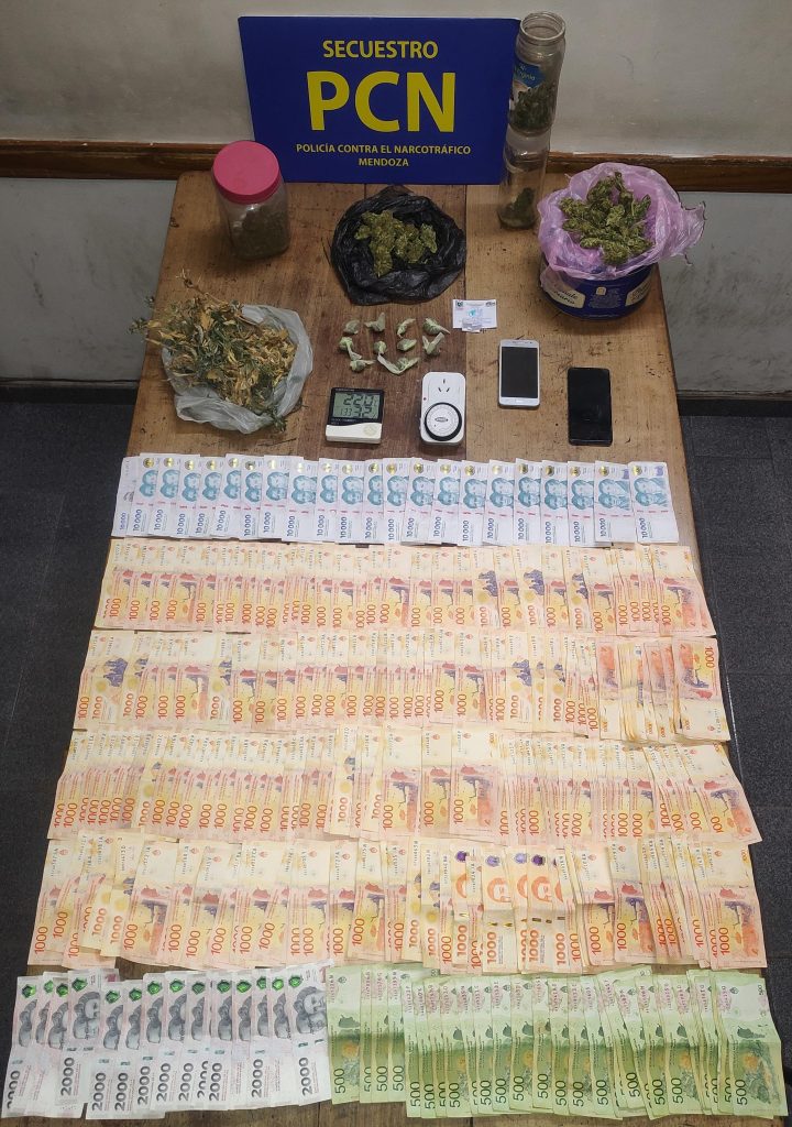 Además, se incautaron teléfonos celulares, la suma aproximada de quinientos mil pesos y otros elementos de fraccionamiento y de interés para la causa.