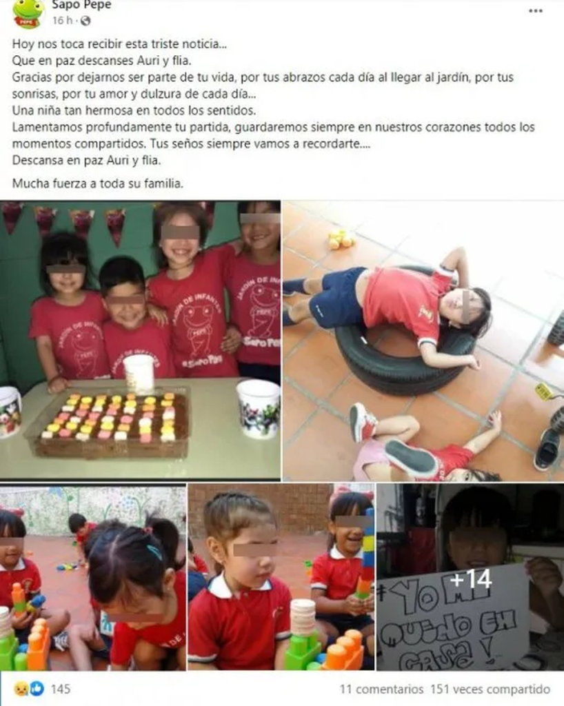 “Una niña tan hermosa en todos los sentidos. Lamentamos profundamente tu partida, guardaremos siempre en nuestros corazones todos los momentos compartidos. Tus seños siempre vamos a recordarte…. Descansa en paz Auri y flia. Mucha fuerza a toda su familia”, se puede leer al final de la publicación.