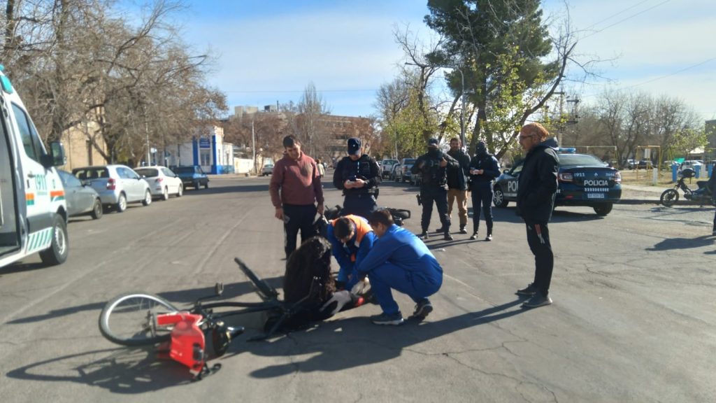 Un nuevo siniestro vial se produjo esta mañana en nuestra ciudad. En la esquina de Aristóbulo del Valle y Alem, y por causas que se investigan, una moto y una bicicleta colisionaron, provocando lesiones en ambos conductores. La que llevó la peor parte fue la ciclista, quien debió ser trasladada por el Servicio de Emergencias Coordinado al hospital Schestakow con traumatismos varios.