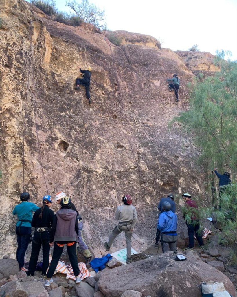 El programa de formación es completo y abarca desde el uso de indumentaria específica para cada entorno —considerando que no es lo mismo transitar los senderos de San Rafael que la alta montaña o la cordillera— hasta primeros auxilios, orientación, liderazgo, trabajo en equipo, lectura de terreno, flora y fauna.
