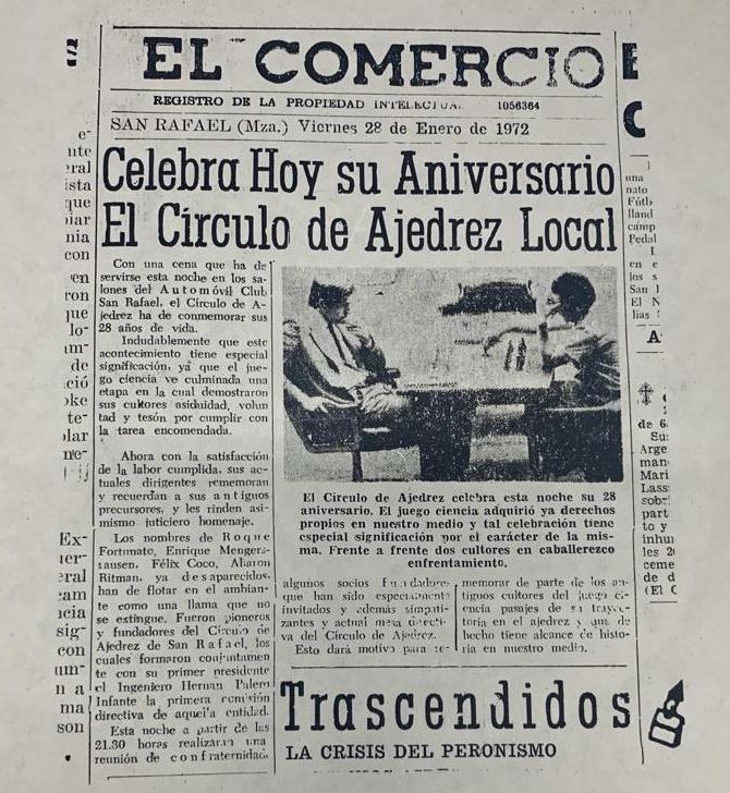 Este viernes, el Club de Ajedrez de San Rafael celebra su 78° aniversario de fundación como institución rectora de esta disciplina a instancia del primer presidente del club, el Ingeniero Hernán Palero Infante, y un grupo de pioneros del juego-ciencia.