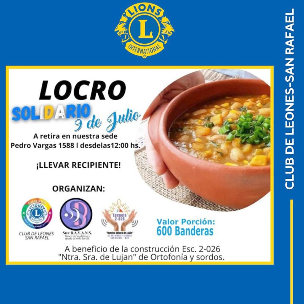 Como ya es una tradición el Club de Leones de San Rafael está preparando una nueva edición de su locro patriótico solidario. Esta vez lo harán con el objetivo de recaudar fondos en beneficio de la Escuela de Ortofonía y Sordos 2-026 “Nuestra Señora de Luján”.