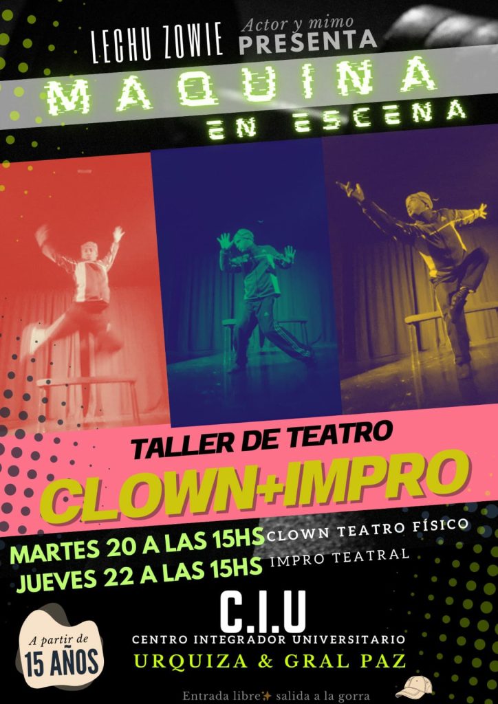 El Centro Integrador Universitario (Av. Urquiza y General Paz) será esta vez el punto de encuentro para un interesante taller de teatro, que se desarrollará hoy martes y el jueves, y que estará a cargo de “Lechu”. “Es a partir de las 15 horas y va a estar dividido en dos géneros teatrales porque a mí me gusta mucho este ‘surfeo’ siempre, me gusta compartir mi experiencia en el clown y en la improvisación”, dijo.