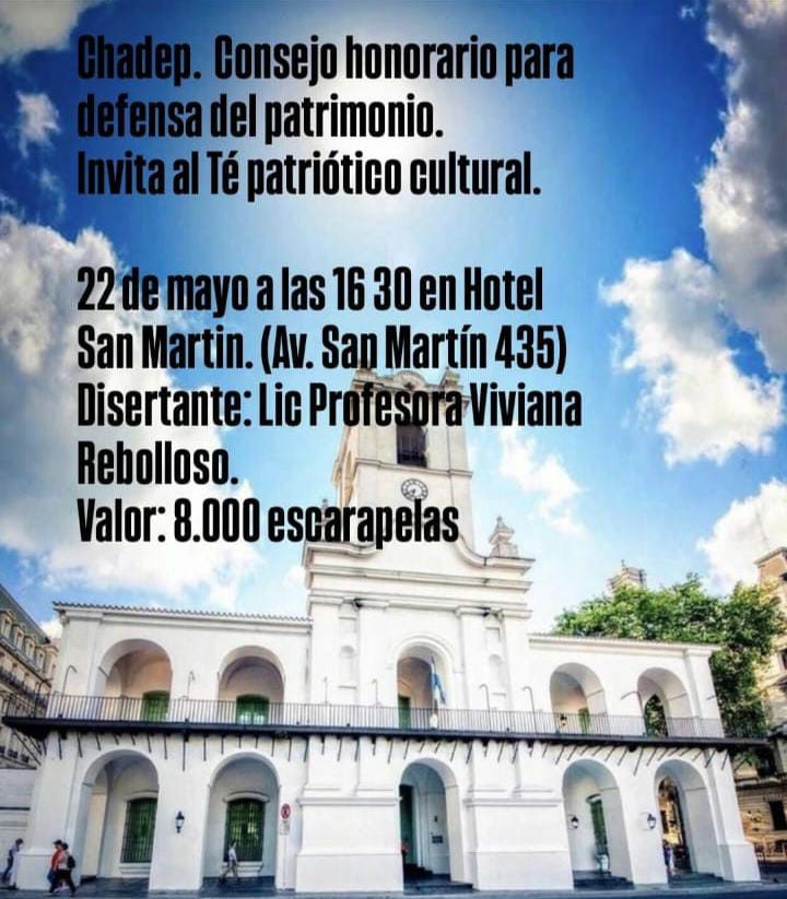 En el marco de la Semana de Mayo, organizado por el Consejo Honorario para la Defensa del Patrimonio (Chadep), se llevará adelante un “té patriótico cultural”. Esther Calvo de Llamazares, su vicepresidenta, brindó algunos detalles en diálogo con FM Vos (94.5) y con Diario San Rafael.