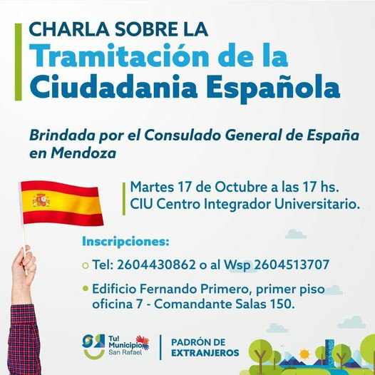 Por razones diversas, se ha incrementado la tramitación de la ciudadanía española y sobre ello dialogó con FM Vos (94.5) y con Diario San Rafael Cristian Escudero, titular del Padrón de Extranjeros, teniendo en cuenta que habrá una charla en San Rafael sobre el tema, dictada nada menos que por el cónsul de España en Mendoza.