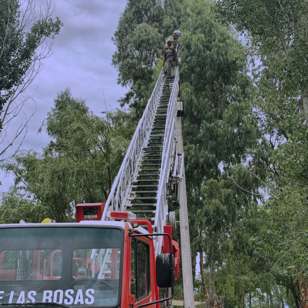 El cuartel de bomberos voluntarios de Salto de las Rosas puso en marcha hace tres años una modalidad de trabajo que les permite sostener la operatividad diaria en medio de una situación económica cada vez más compleja. Se trata de la prestación de servicios en altura y poda preventiva utilizando el camión escalera, una unidad que es la única con esas características en el sur de la provincia.