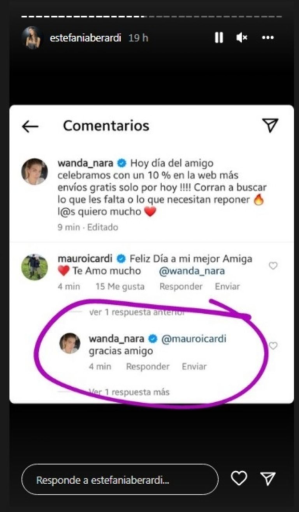 Por su parte, tras leer esto, Icardi le respondió de forma cariñosa a su mujer: «Feliz día a mi mejor amiga. Te amo, Wanda».