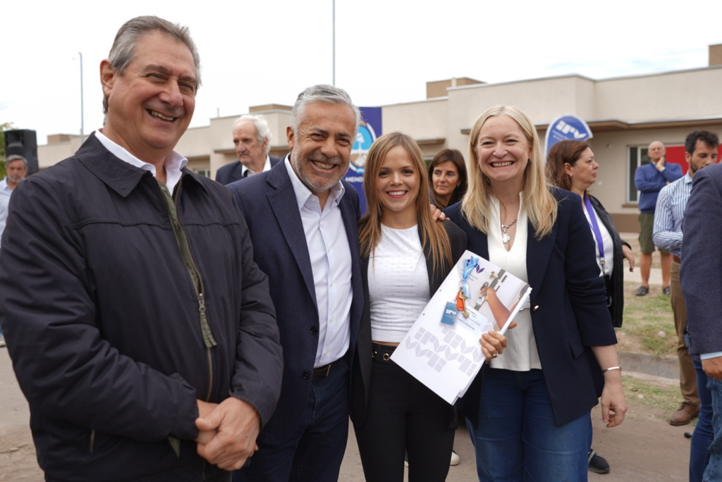 Por su parte la subsecretaria de Infraestructura resaltó la entrega de 62 viviendas en San Rafael cuya inversión asciende casi a los 5.000 millones de pesos. También la funcionaria explicó los programas con los que cuenta el IPV. “Hay dos modalidades de programa. Estos particulares de hoy, los adjudicatarios ingresan, hacen un aporte significativo de 7 millones y medio de pesos más o menos. Después abonan una cuota de 300 mil, 350 mil pesos promedio mensuales que pagan a partir de ahora y financiado en varios años”.
