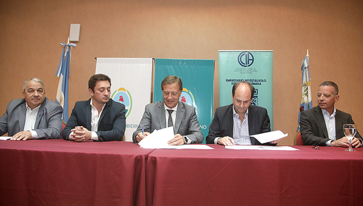 En un acto que tuvo lugar en el Centro de Congreso y Exposiciones Alfredo Bufano en la tarde del viernes, el gobernador de Mendoza, Rodolfo Suarez, firmó el contrato entre el Gobierno de Mendoza y la empresa Corporación del Sur S.A., para la realización del acueducto ganadero Monte Comán – La Horqueta.